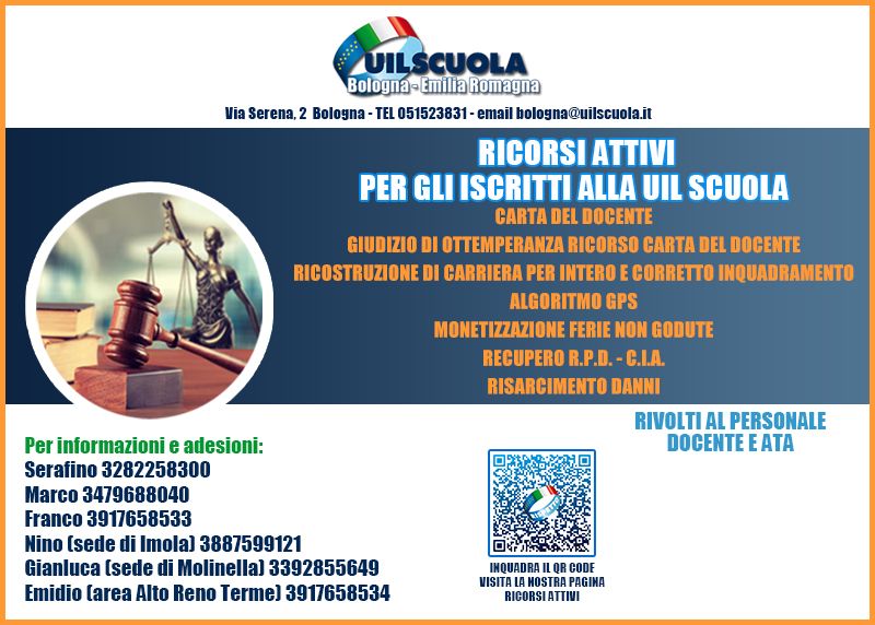 Di seguito i ricorsi attivi della FEDERAZIONE UIL SCUOLA RUA di Bologna