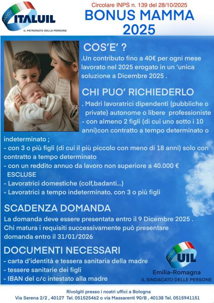 Il diritto all’erogazione del Nuovo bonus mamme sussiste nei soli mesi di vigenza del rapporto di lavoro, con esclusione dei periodi di sospensione; con reddito da lavoro non superiore a 40.000 euro su base annua.