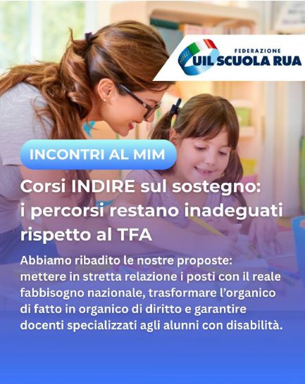 Nel complesso, la UIL Scuola ribadisce la propria contrarietà a tali percorsi, in particolare a quelli rivolti al personale con titolo estero affidati all’INDIRE, che non garantiscono, a nostro avviso, lo stesso livello di qualità formativa assicurato dai percorsi universitari del TFA sostegno.