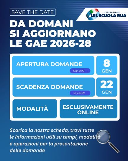 Si segnala che anche per le GAE è previsto l’aggiornamento; pertanto, l’aspirante potrà regolarsi di conseguenza nella scelta della provincia.