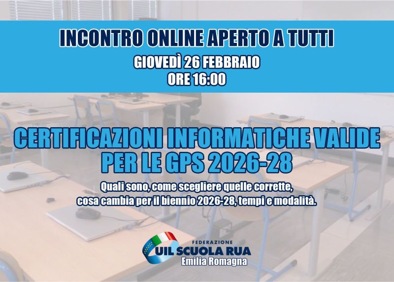 Nel webinar del 26 febbraio alle ore 16, IRASE nazionale illustrerà quali certificazioni informatiche sono riconosciute, come orientarsi nella scelta, quali effetti producono sull’aggiornamento delle Graduatorie, oltre ai tempi e alle modalità di acquisizione.
