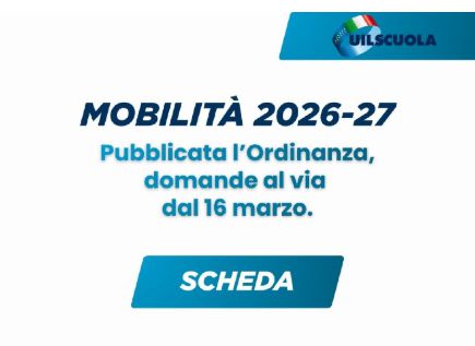 Abbiamo inoltre aggiornato la piattaforma Uil Scuola dedicata alla mobilità del personale docente, educativo e ATA per l’a.s. 2026/27: mobilità territoriale, mobilità annuale e graduatorie interne in un unico spazio, con normativa, schede di approfondimento, tabelle e simulatori di calcolo. Clicca qui per accedere alla piattaforma e consultare tutti i materiali.