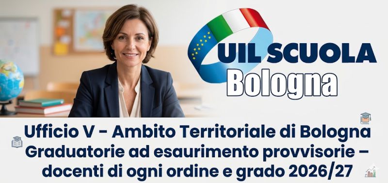 Al seguente link, il dispositivo prot. n. 6024 del 13/04/2026 unitamente alle graduatorie ad esaurimento del personale educativo e del personale docente di ogni ordine e grado che ha presentato istanza in questa provincia, valevoli per il biennio 2026/2028 pubblicato in data odierna sul sito internet dell’Ufficio V – Ambito Territoriale di Bologna: